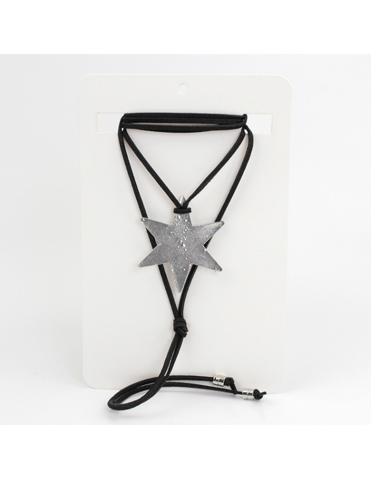 Collar de gamuza de múltiples vueltas, con dije exclusivo de fundición con forma de estrella y terminales en punteras.