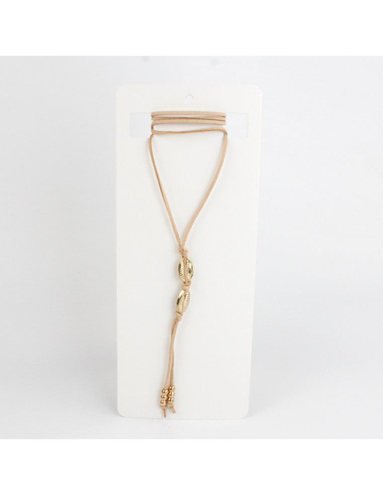 Collar de gamuza de múltiples vueltas, con dijes de CCB exclusivos con forma de buzios y terminales en punteras.