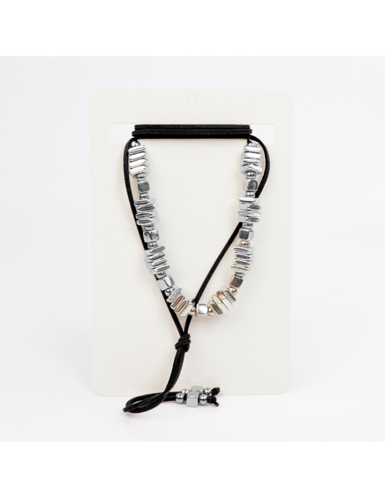 Collar de gamuza de múltiples vueltas, enhebrada con piezas exclusivas de CCB y terminales en punteras.
