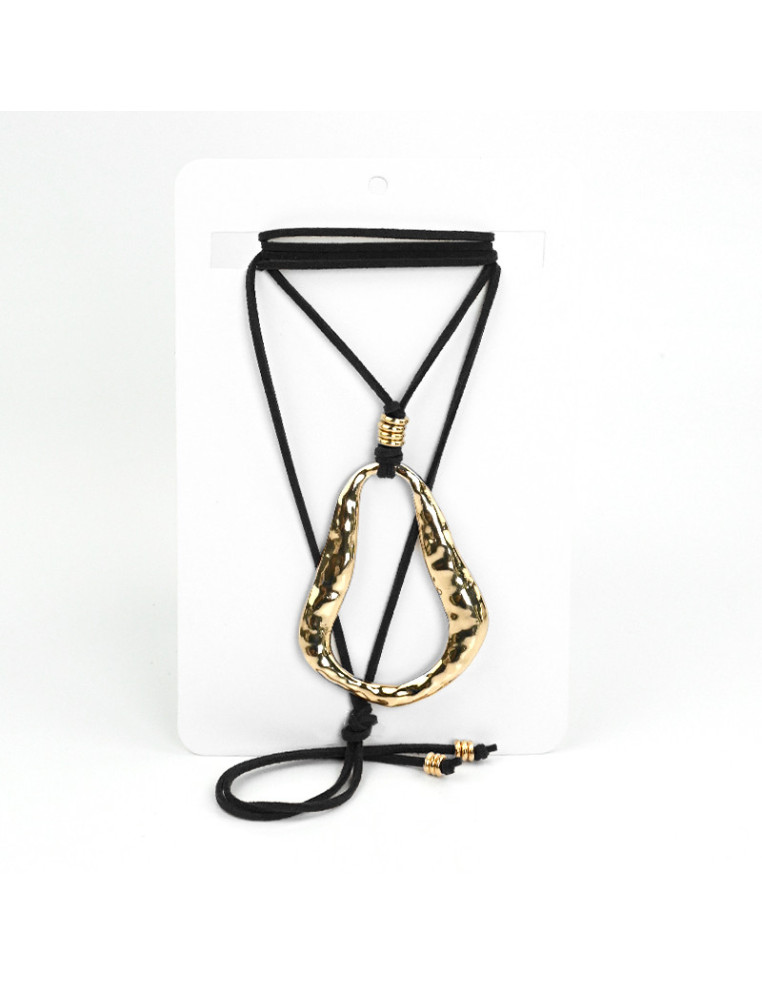 Collar de gamuza de múltiples vueltas, con dije exclusivo de fundición orgánico y terminales en punteras.
