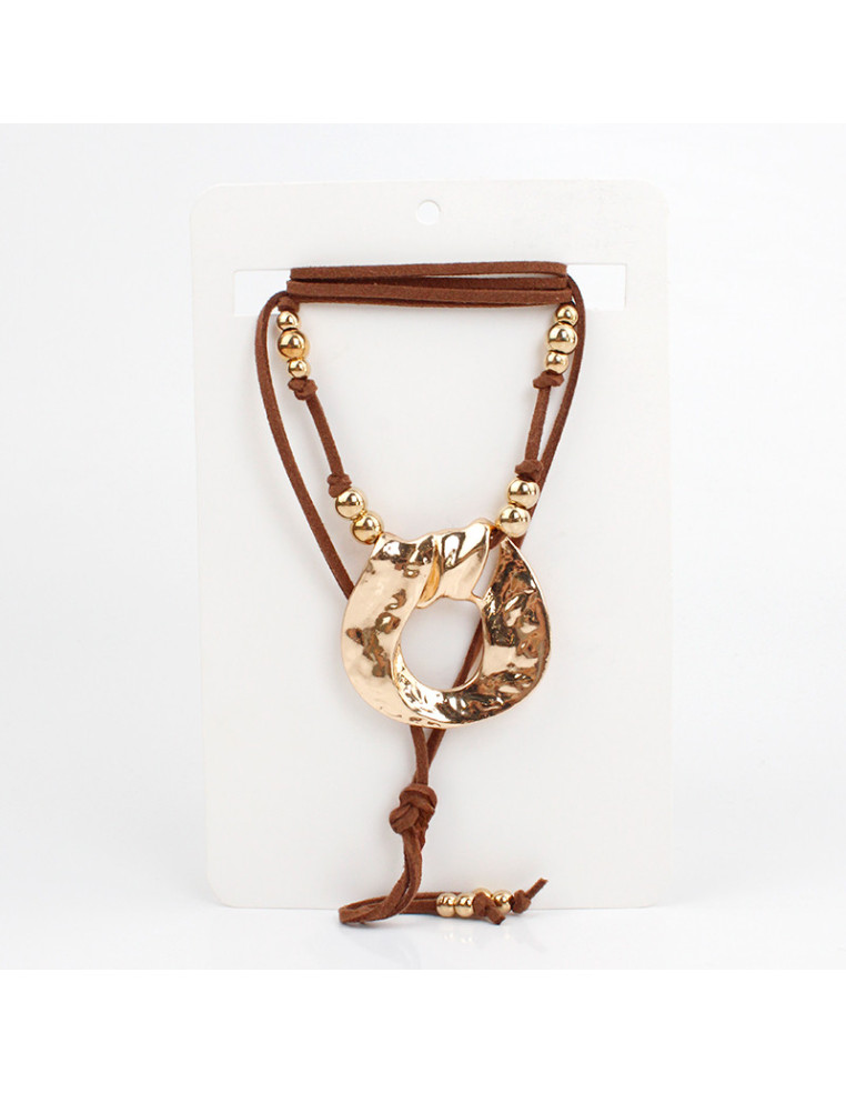 Collar de gamuza de múltiples vueltas, con dije exclusivo de fundición de diseño orgánico boho y terminales en punteras.