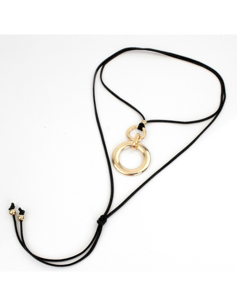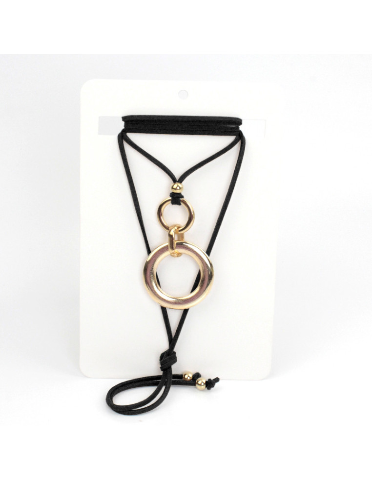 Collar de gamuza de múltiples vueltas, con dijes exclusivos de CCB circulares y terminales en punteras.