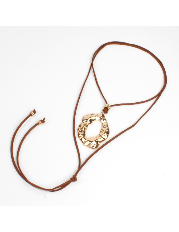 Collar de gamuza de múltiples vueltas, con dije exclusivo de fundición de forma orgánica y terminales en punteras.