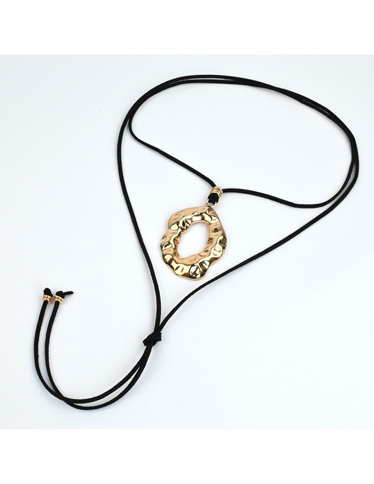 Collar de gamuza de múltiples vueltas, con dije exclusivo de fundición de forma orgánica y terminales en punteras.