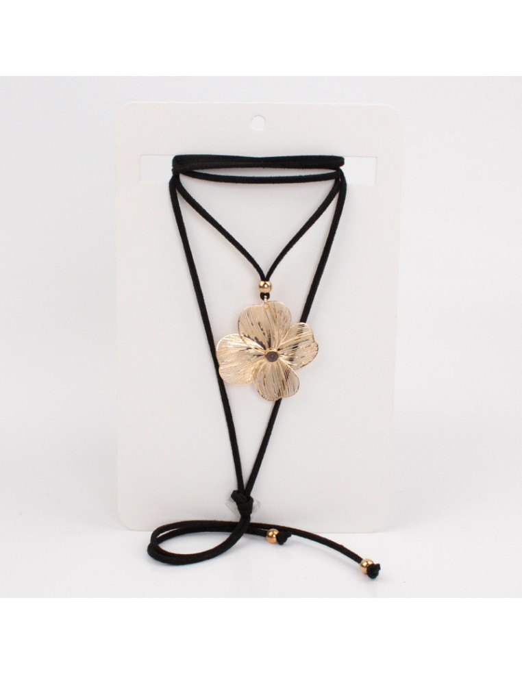 Collar de gamuza de múltiples vueltas, con dije exclusivo de flor filigranada y terminales en punteras.