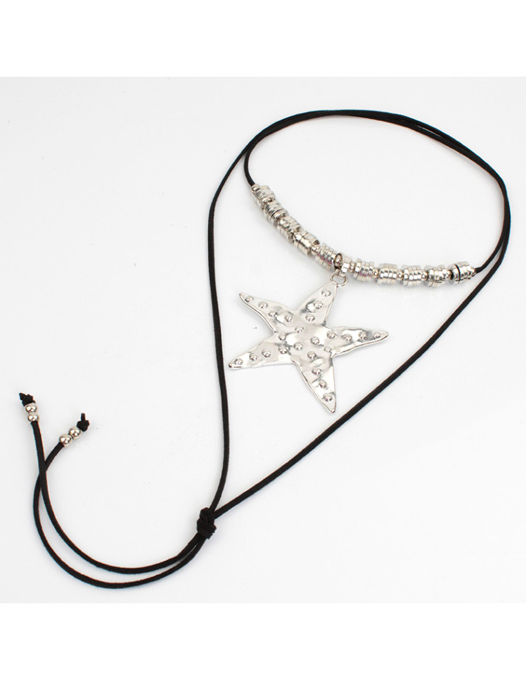Collar de gamuza de múltiples vueltas, con dije exclusivo de fundición con forma de estrella, combinado con piezas pasantes de CCB y terminales en punteras.
