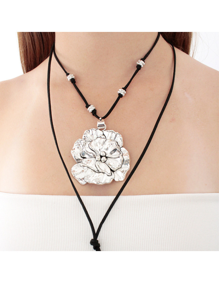 Collar de gamuza de múltiples vueltas, con dije exclusivo de fundición con forma de rosa XL y terminales en punteras.