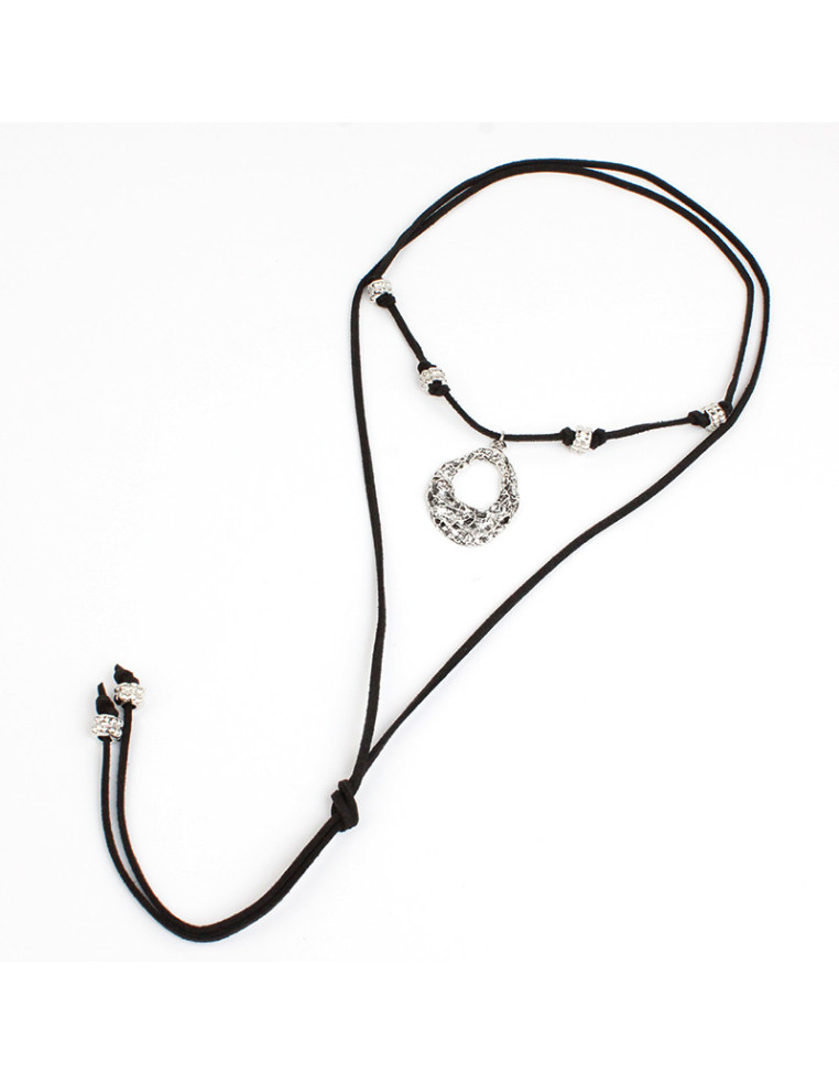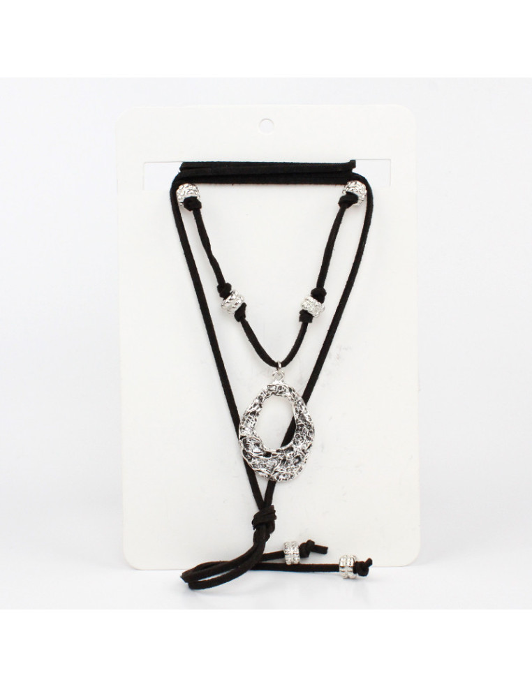Collar de gamuza de múltiples vueltas, con dije exclusivo de fundición de forma orgánica y terminales en punteras.
