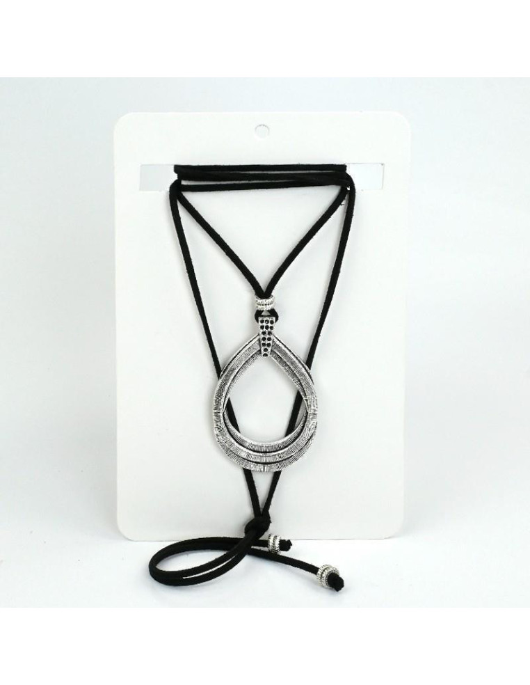 Collar de gamuza de múltiples vueltas, con dije exclusivo de fundición y terminales en punteras.