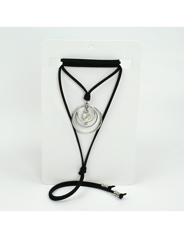 Collar de gamuza de múltiples vueltas, con dijes exclusivos de fundición circulares y terminales en punteras.