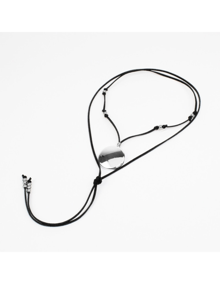 Collar de gamuza de múltiples vueltas, con dije de CCB, piezas y terminales en punteras.