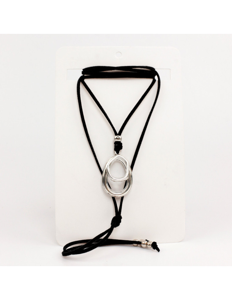 Collar de gamuza de múltiples vueltas, con doble dije exclusivo de fundición y terminales en punteras.