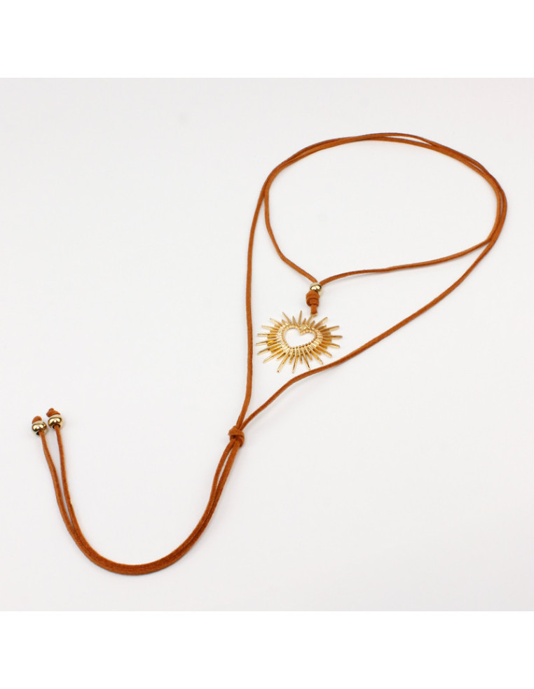 Collar de gamuza de múltiples vueltas, con dije exclusivo de fundición con forma de corazón y terminales en punteras.