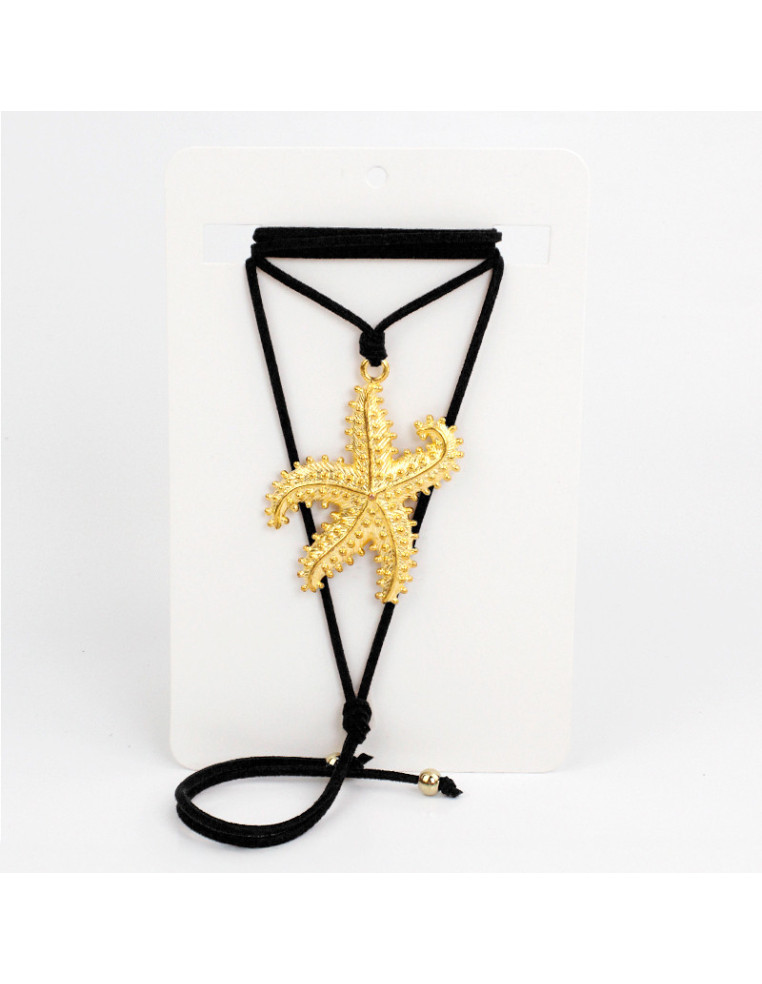 Collar de gamuza de múltiples vueltas, con dije de fundición con forma de estrella de mar y terminales en punteras.