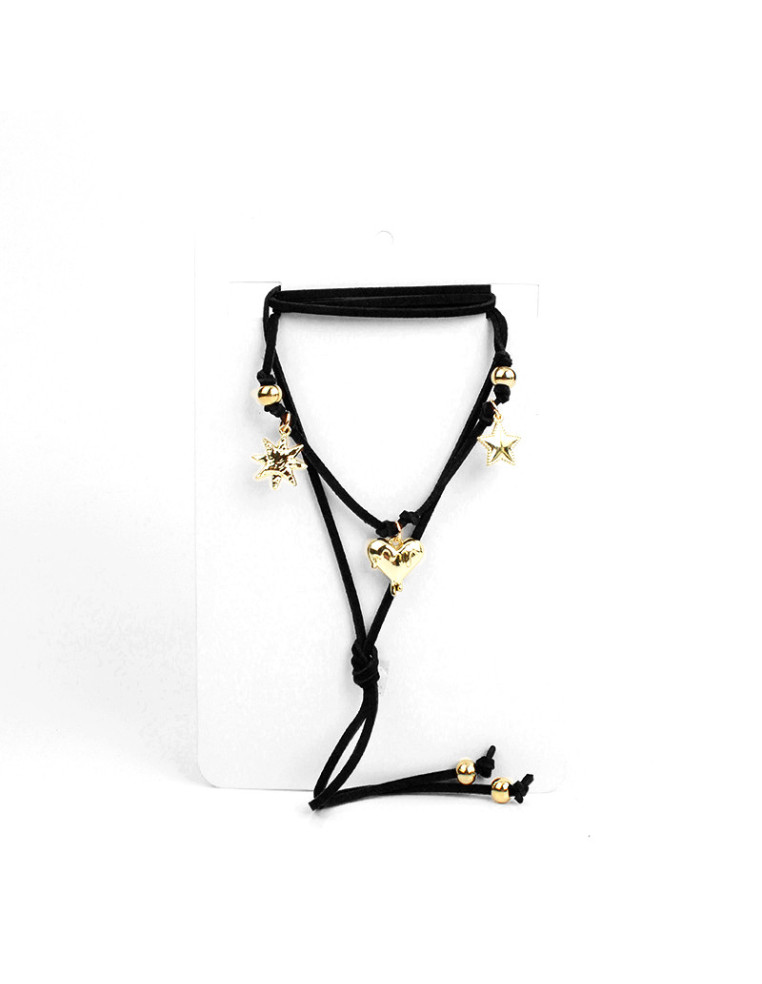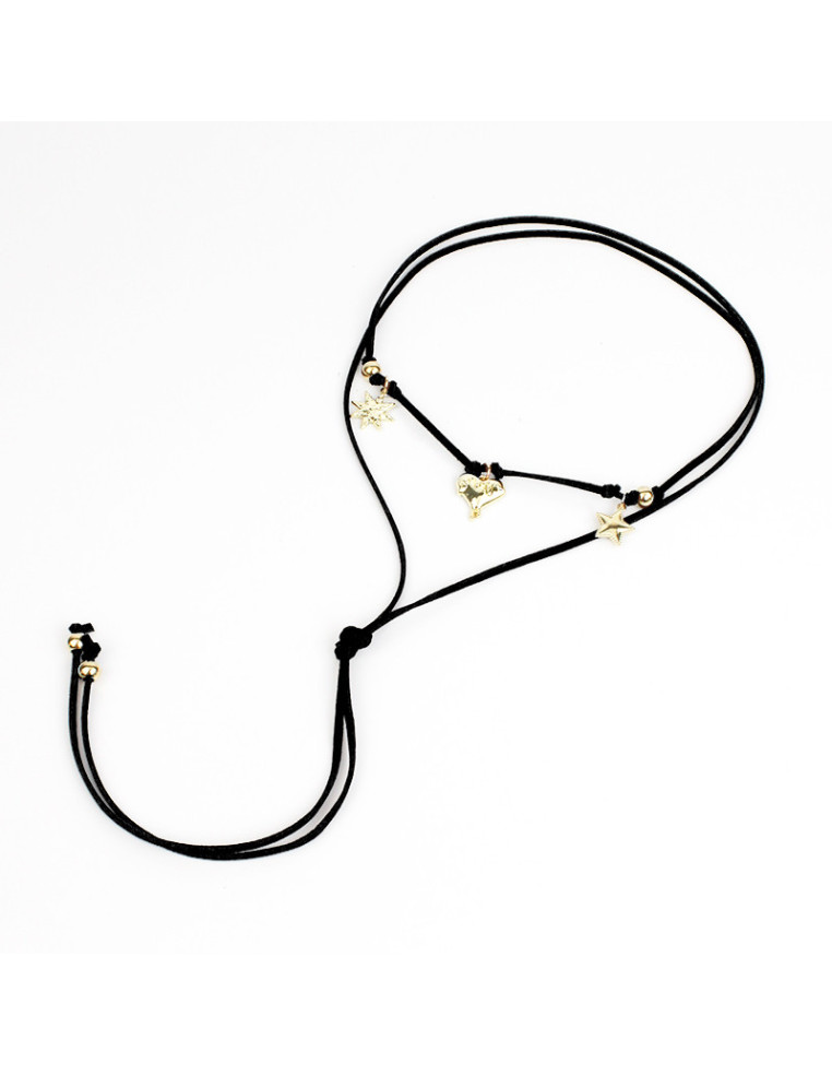 Collar de gamuza intervenido con dijes exclusivos dorados y piezas de CCB.
