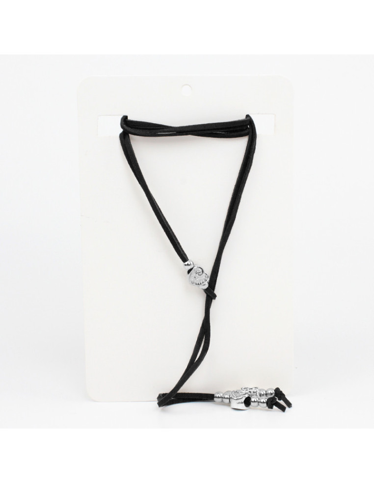 Collar corbatero de gamuza con dije de fundición regulable y terminales en punteras.