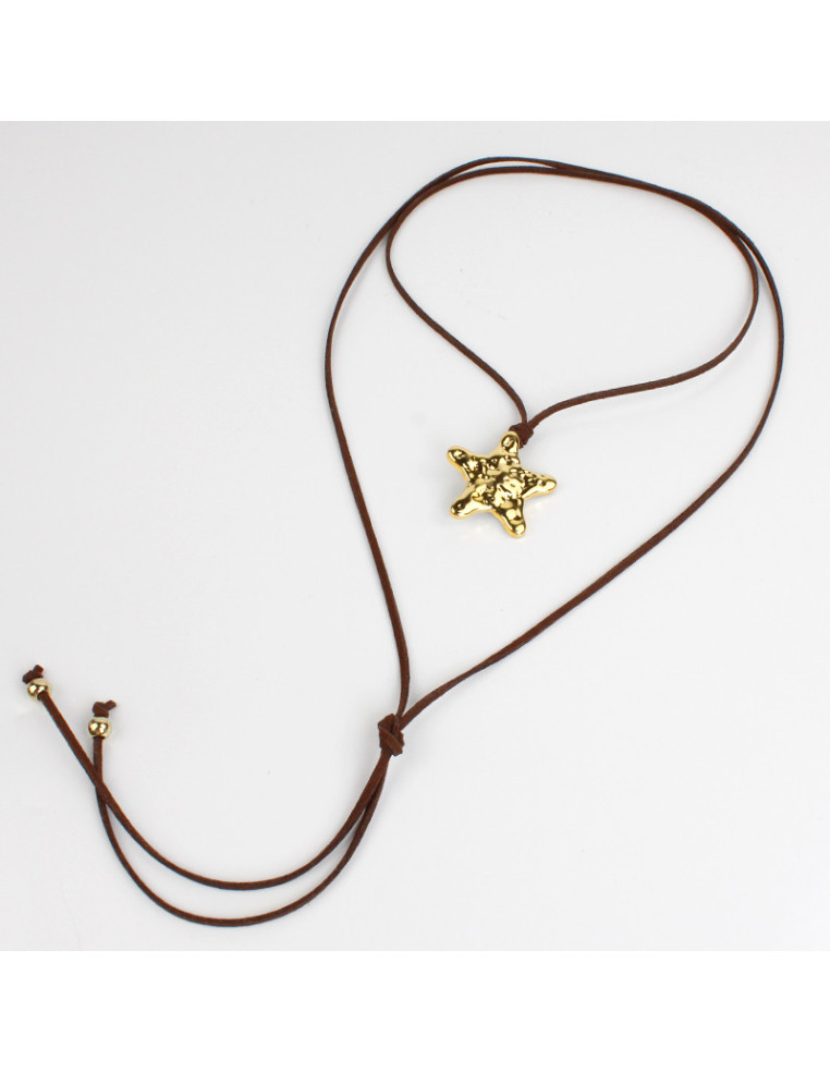 Collar de gamuza de múltiples vueltas, con dije de CCB con forma de estrella y terminales en punteras.