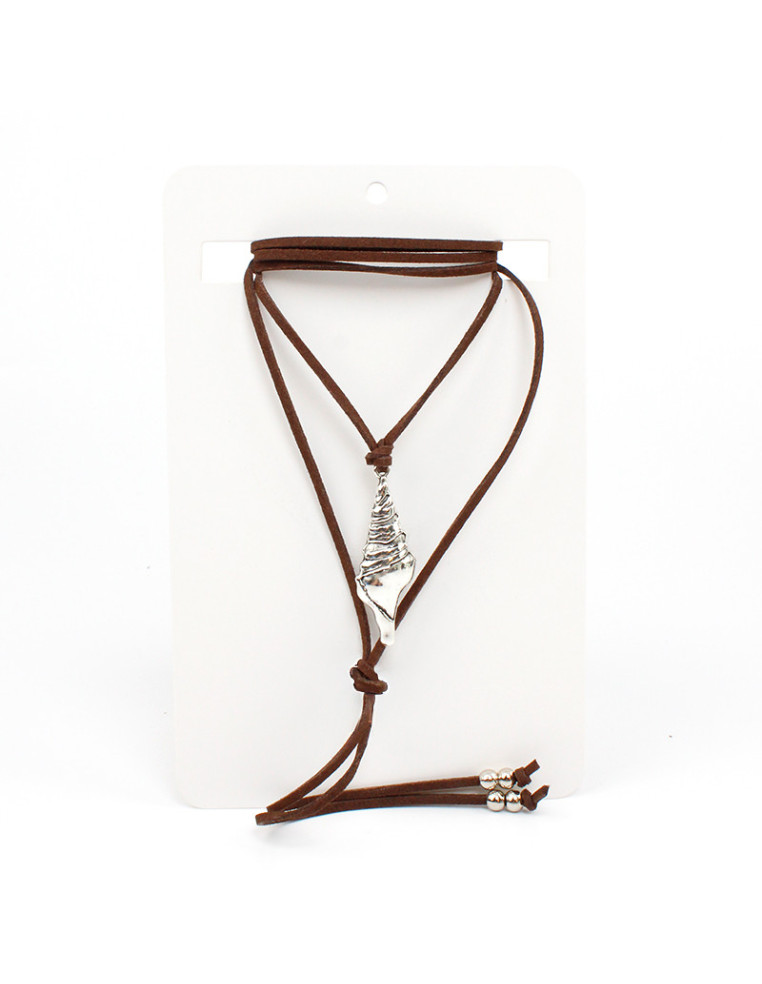 Collar de gamuza de múltiples vueltas, con dije de fundición marino y terminales en punteras.