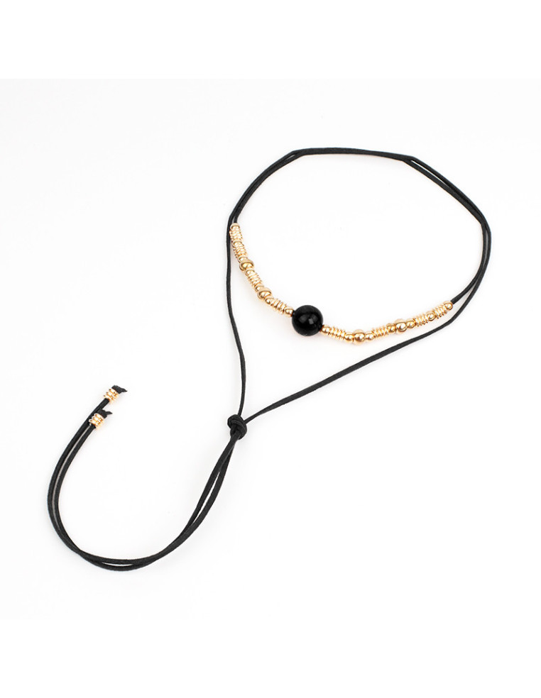 Collar de gamuza de múltiples vueltas, con piezas de acrílico y separadores de CCB, con terminales en punteras.