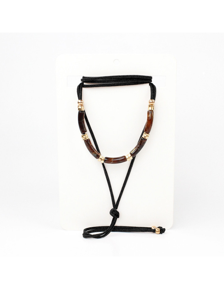 Collar de gamuza de múltiples vueltas, con piezas de acrílico, separadores de CCB y terminales en punteras.