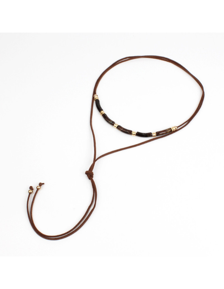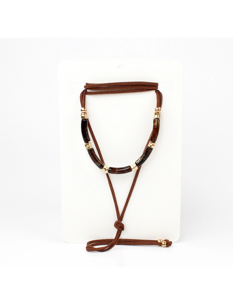 Collar de gamuza de múltiples vueltas, con piezas de acrílico, separadores de CCB y terminales en punteras.