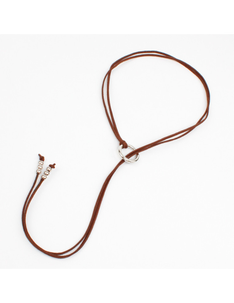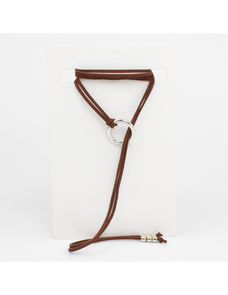 Collar corbatero de gamuza con argolla y terminales en punteras.