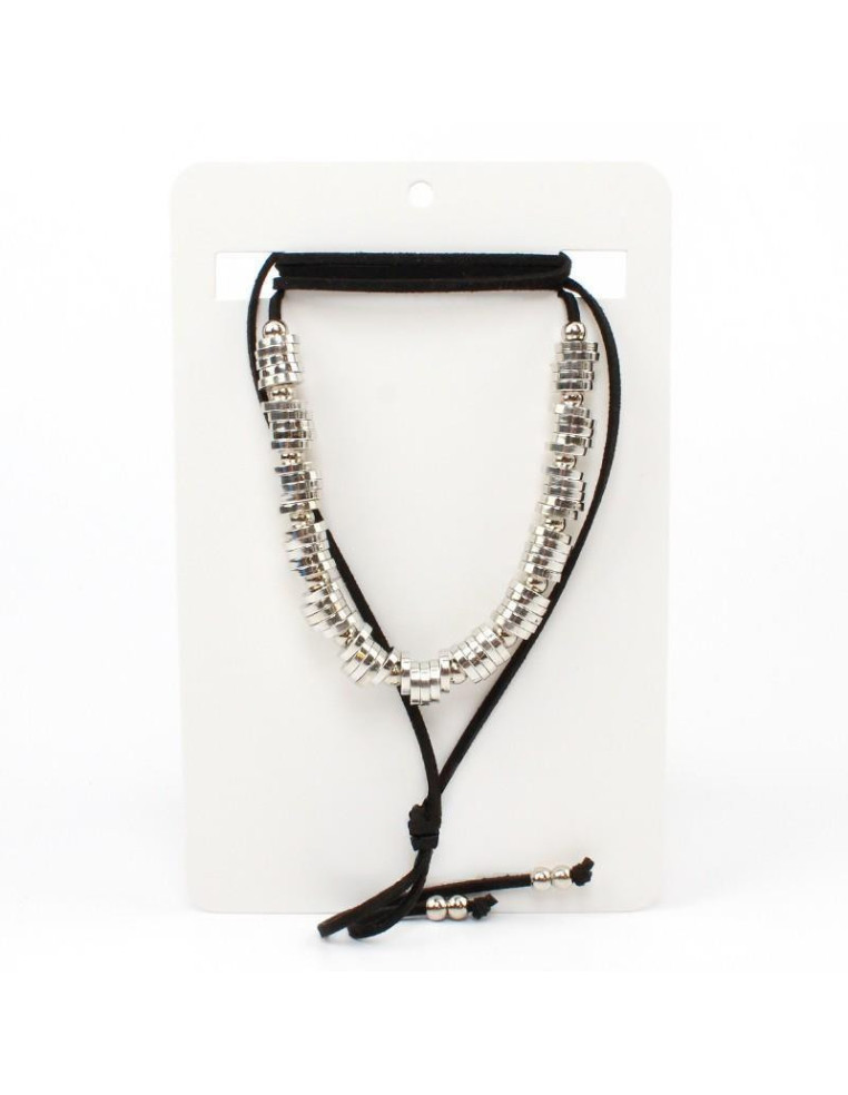 Collar de gamuza de múltiples vueltas, con piezas pasantes de CCB y terminales en punteras.
