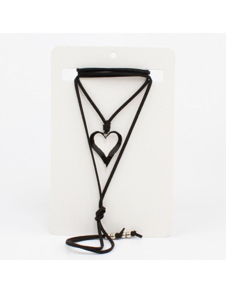 Collar de gamuza de múltiples vueltas, con dije de fundición pintado a mano y terminales en punteras.