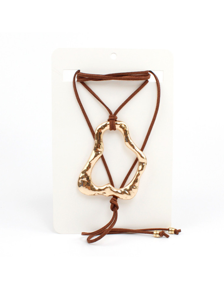Collar de gamuza de múltiples vueltas, con dije de fundición orgánico y terminales en punteras.
