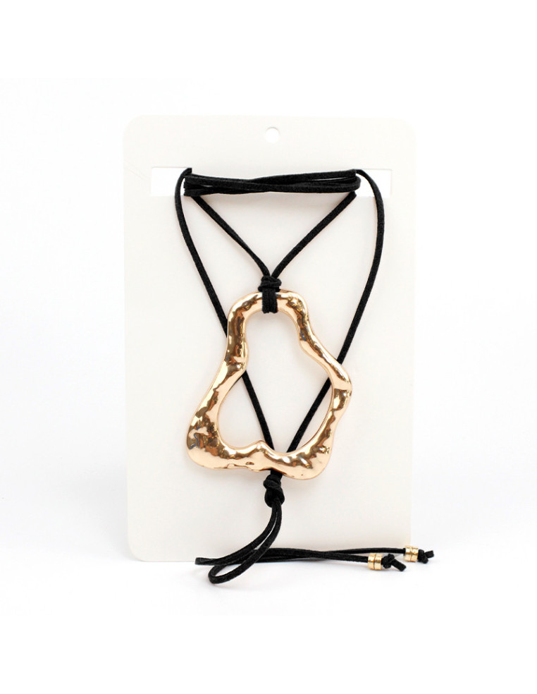 Collar de gamuza de múltiples vueltas, con dije de fundición orgánico y terminales en punteras.