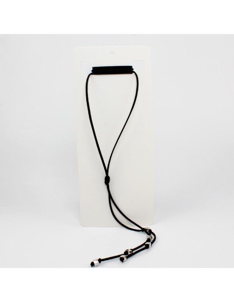 Collar de gamuza de múltiples vueltas, con piezas de CCB y terminales en punteras. Medida: 140cm de largo.