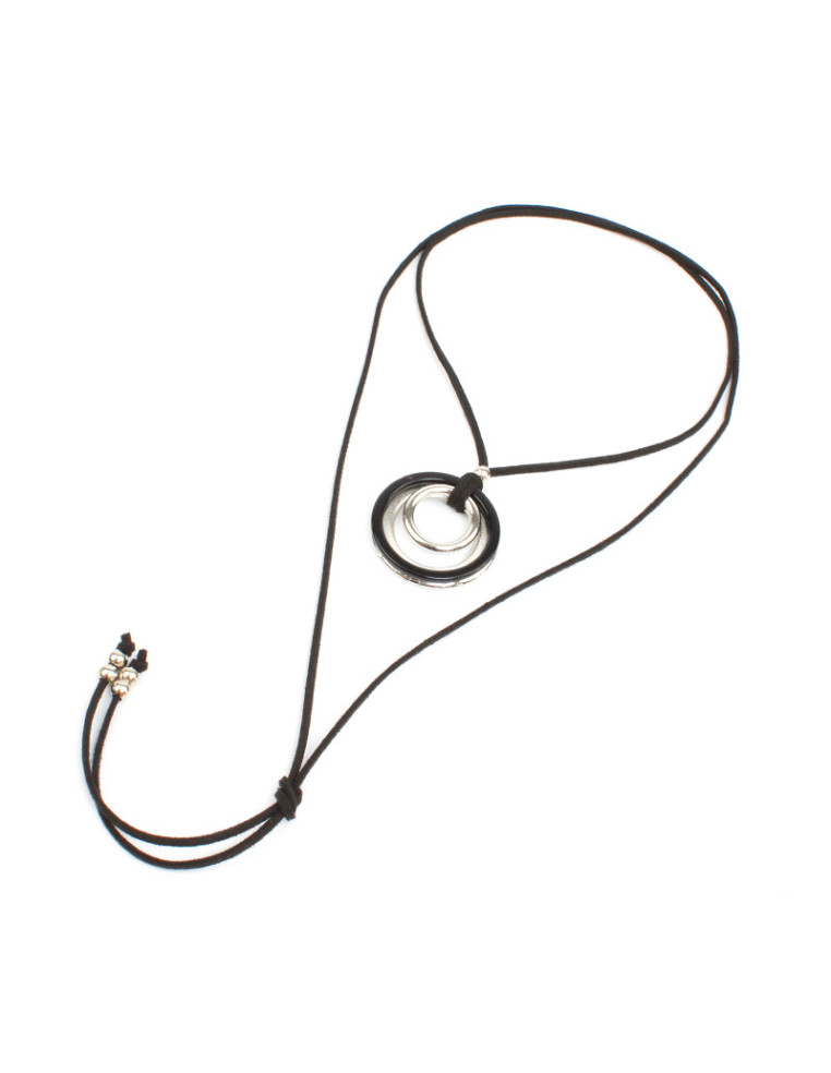 Collar de gamuza de múltiples vueltas, con dije de acrílico, CCB y terminales en punteras.