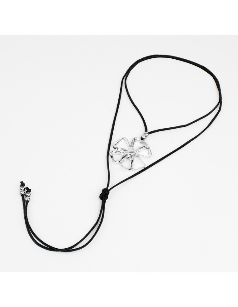Collar de gamuza de múltiples vueltas, con dije de fundición con forma de flor y terminales en punteras.