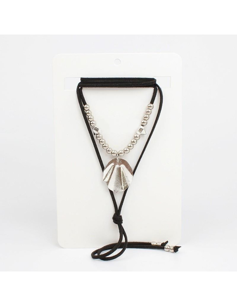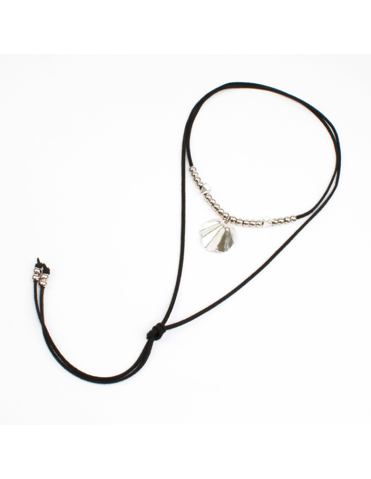 Collar de gamuza de múltiples vueltas, con dije de fundición, pasantes de CCB y terminales en punteras.