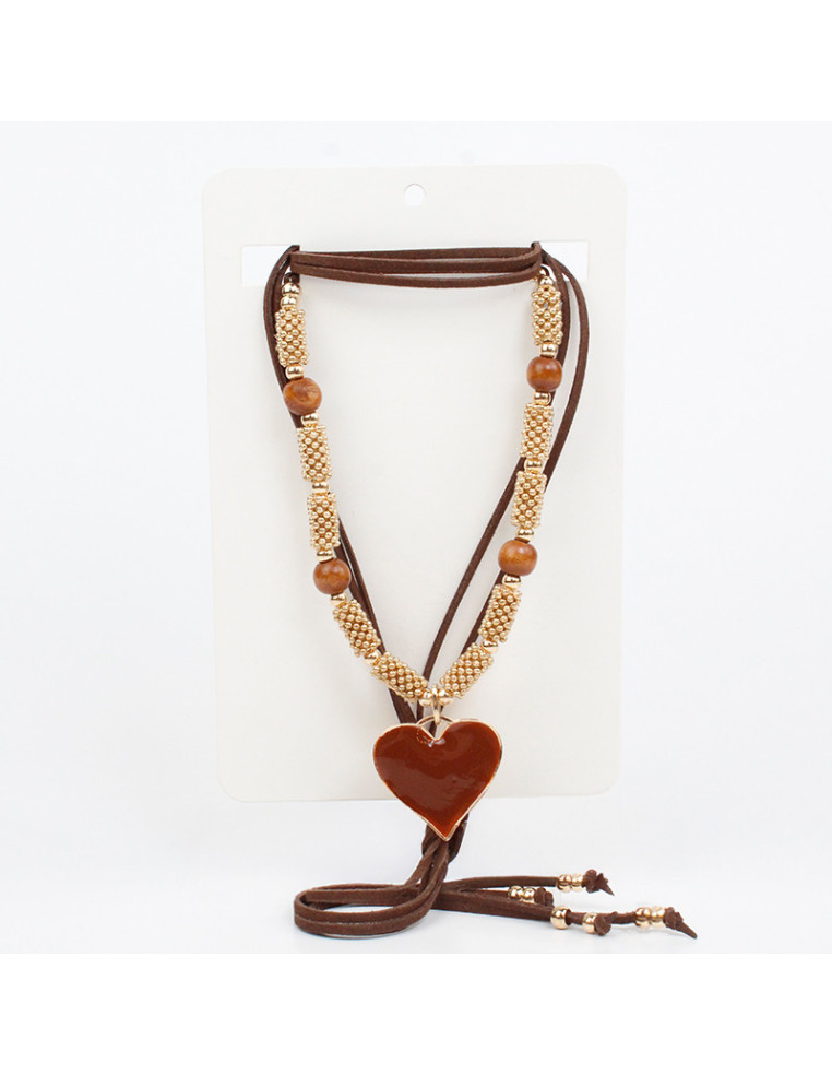Collar combinado de lenga, con pasantes de CCB, cuentas de vidrio y dije de fundición pintado a mano.