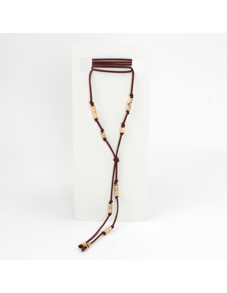 Collar corbatero de gamuza de múltiples vueltas, con piezas exclusivas de CCB y terminales en punteras.