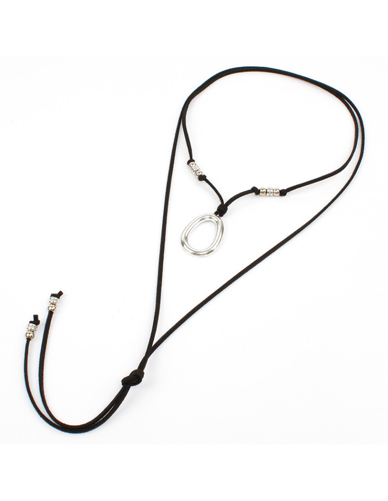 Collar de gamuza de múltiples vueltas, con dije de fundición orgánico y terminales en punteras.