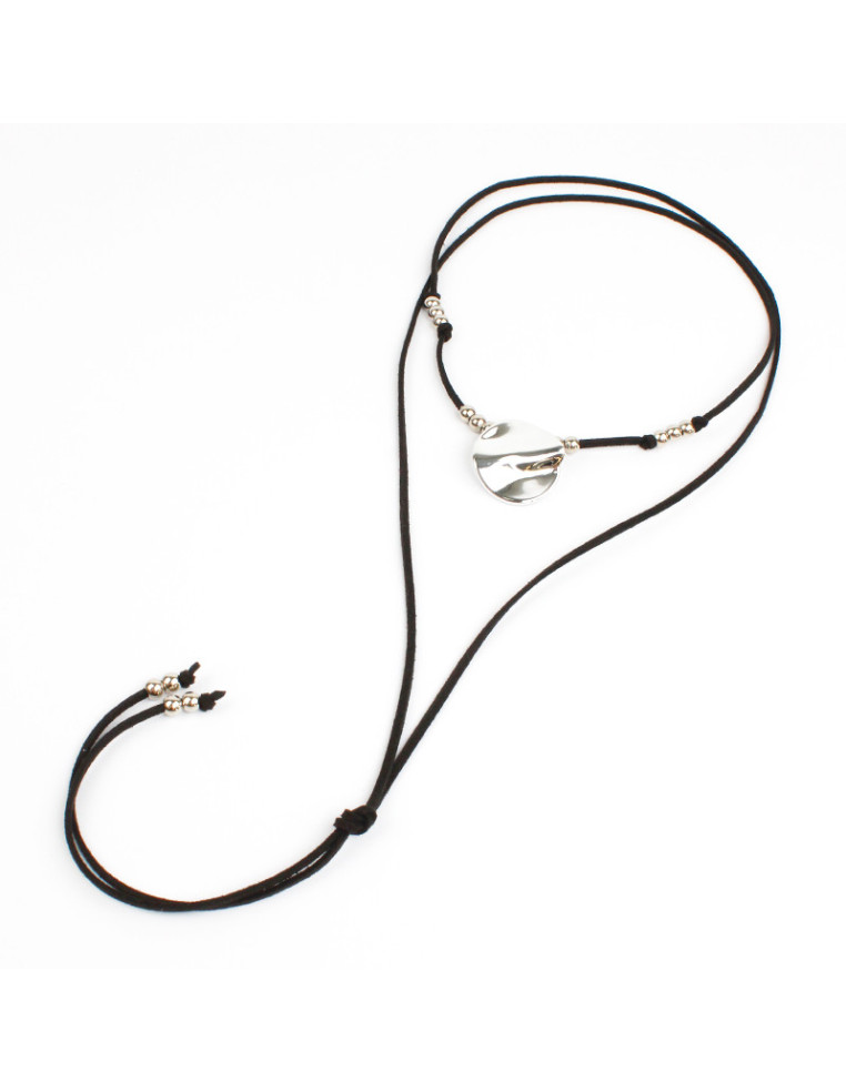 Collar de gamuza de múltiples vueltas, con dije de y terminales en punteras.