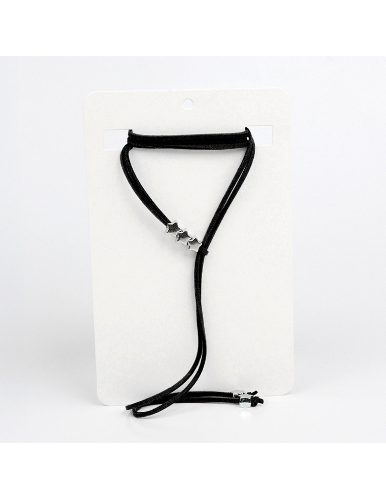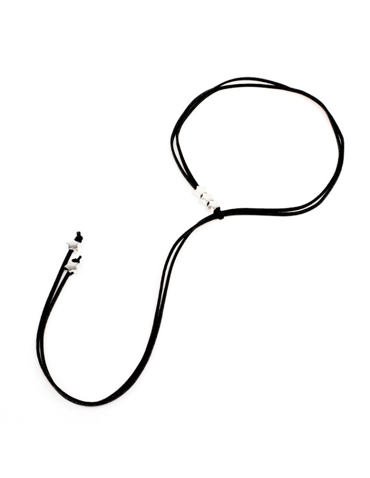 Collar Corbatero de gamuza con dijes en forma de estrella y terminales en punteras.