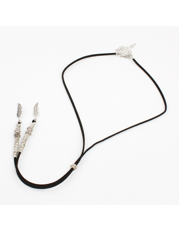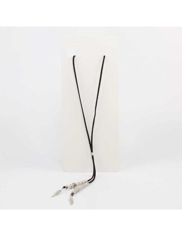 Collar corbatero de gamuza con pasantes de CCB boho y dijes terminales.