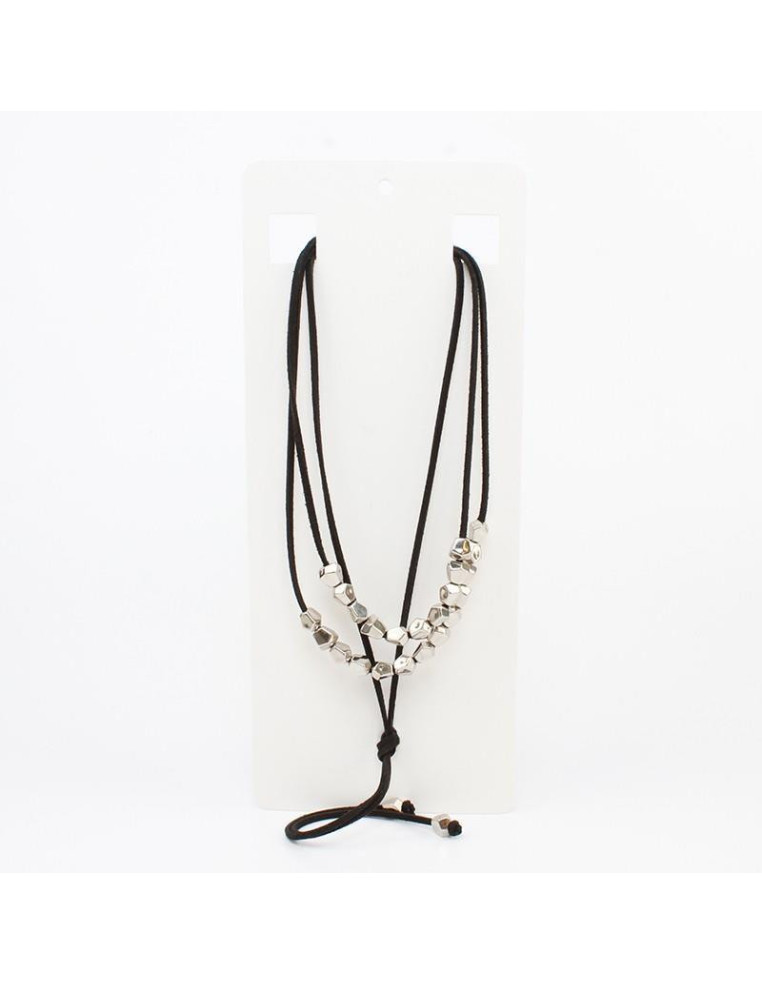 Collar corbatero de gamuza, con pasantes orgánicos de CCB. Medidas: 37cm, 40cm y 42cm de largo, ajustable con cadena de enganche de 10cm.