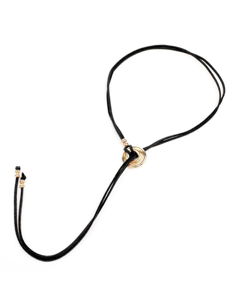 Collar corbatero de gamuza con argollas de CCB doradas y terminales en punteras.