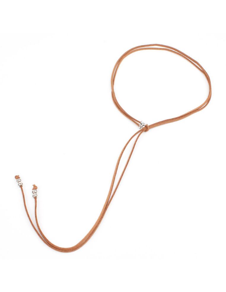 Collar corbatero de gamuza terminales en punteras.Medida: 140cm de largo.