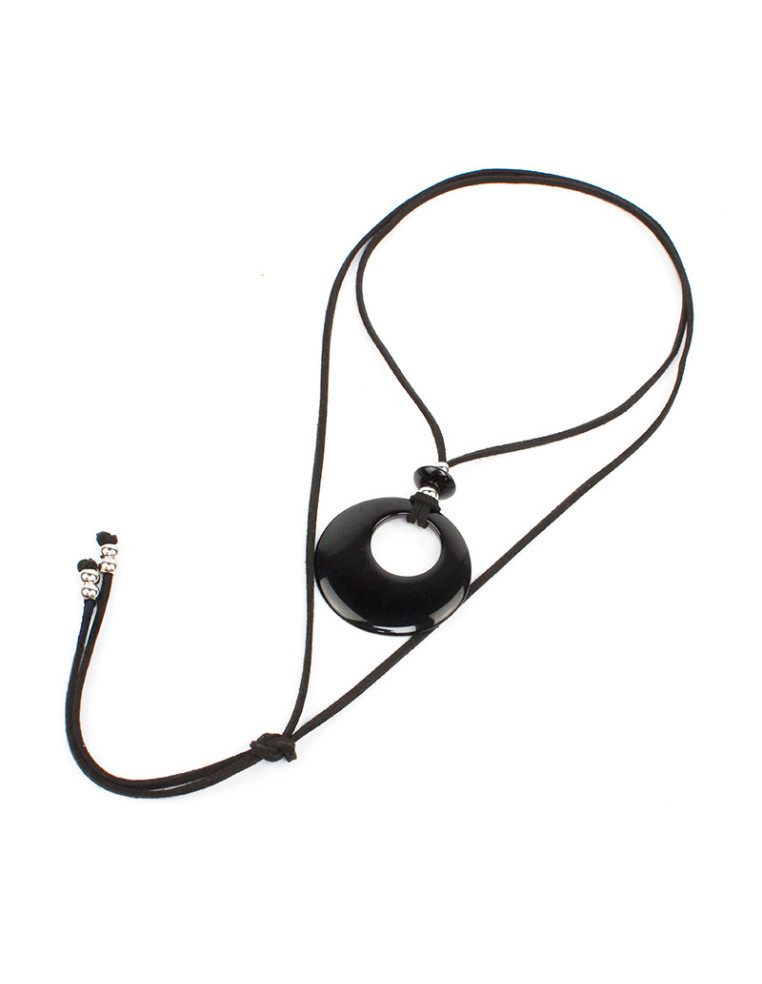 Collar de gamuza de múltiples vueltas, con dije de acrílico y terminales en punteras.
