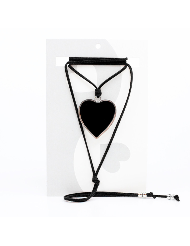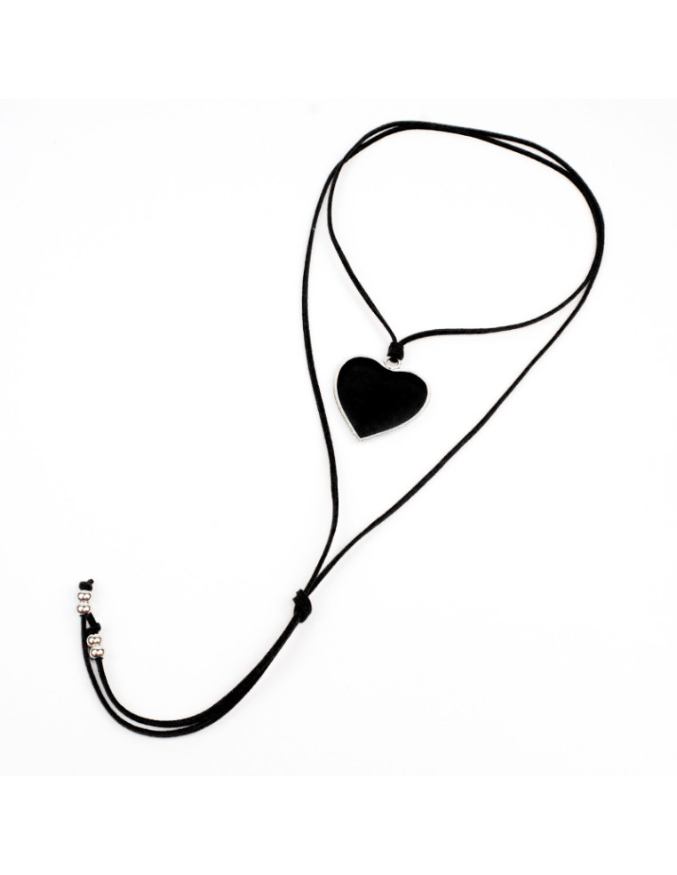 Collar de gamuza de múltiples vueltas, con dije de fundición pintado a mano, con forma de corazón y terminales en punteras. Medida: 140cm de largo.