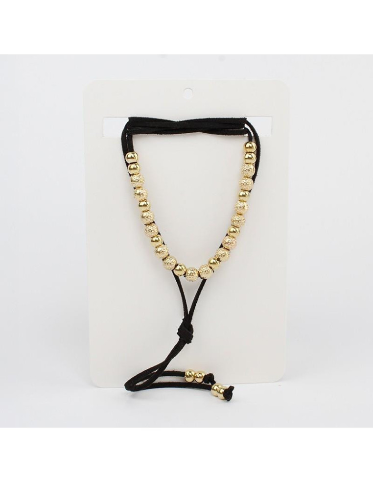 Collar de gamuza de múltiples vueltas, con pasantes texturizados y terminales en punteras. Medida: 140cm de largo.