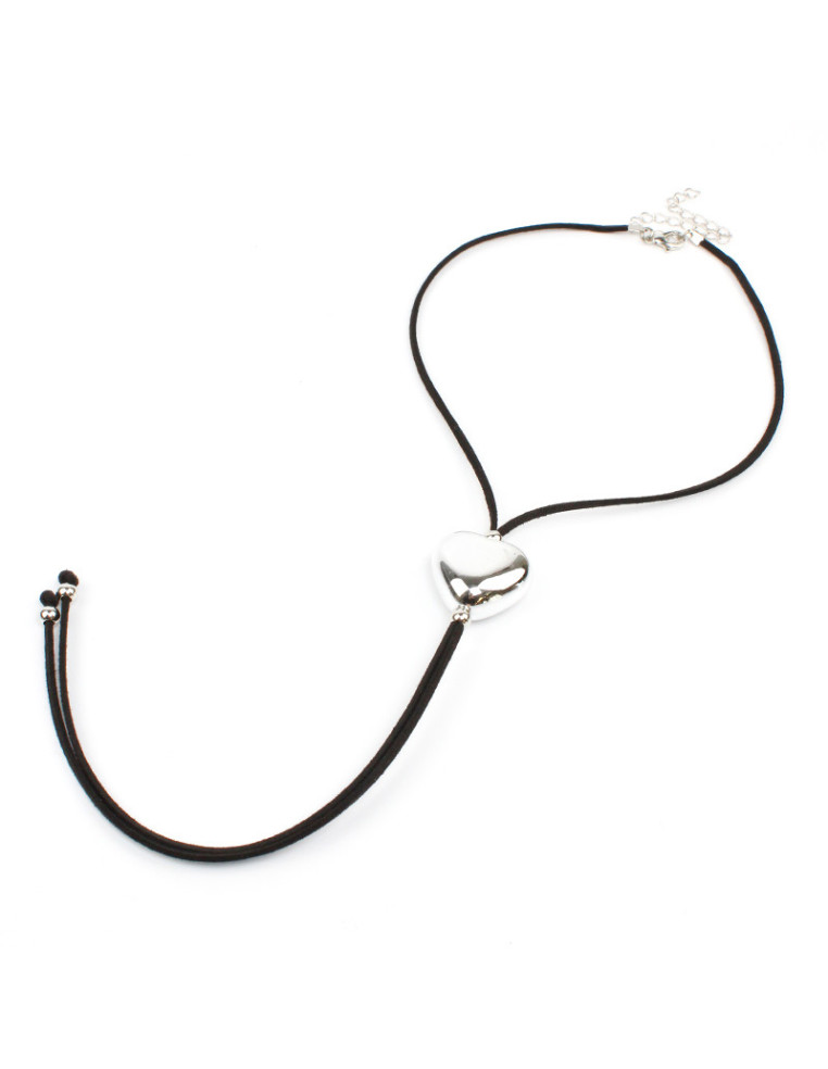 Collar corbatero de gamuza con dije de CCB con forma de corazón. Medida: 37cm de largo, ajustable con cadena de enganche de 10cm.