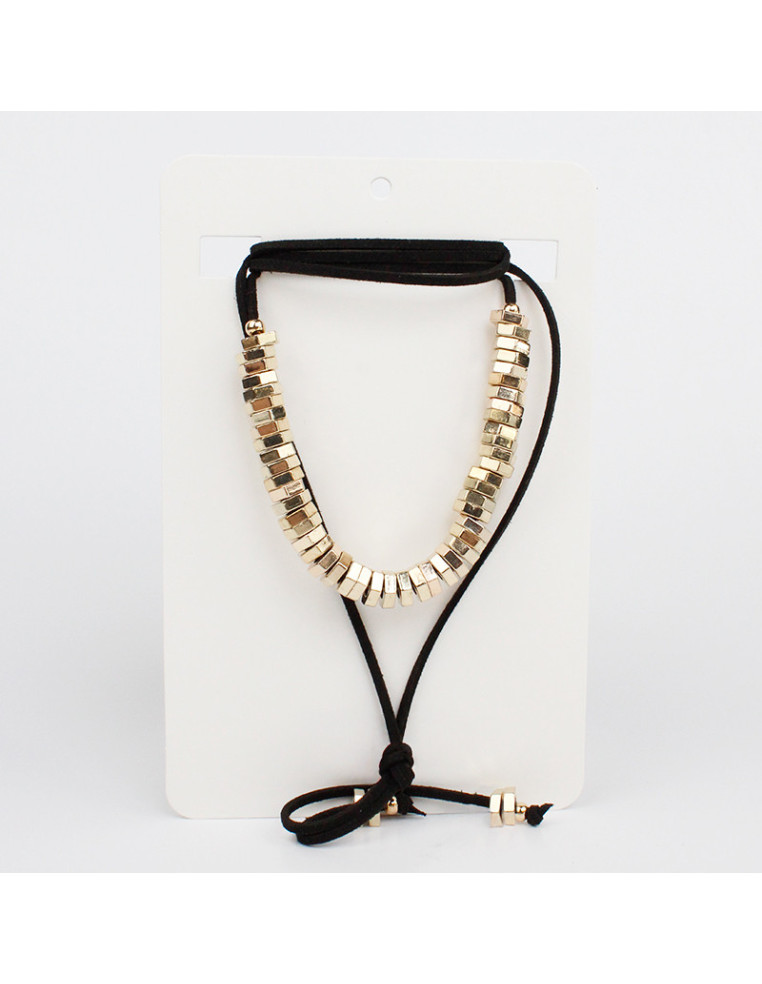 Collar de gamuza de múltiples vueltas, con pasantes de CCB hexagonales y terminales en punteras.
