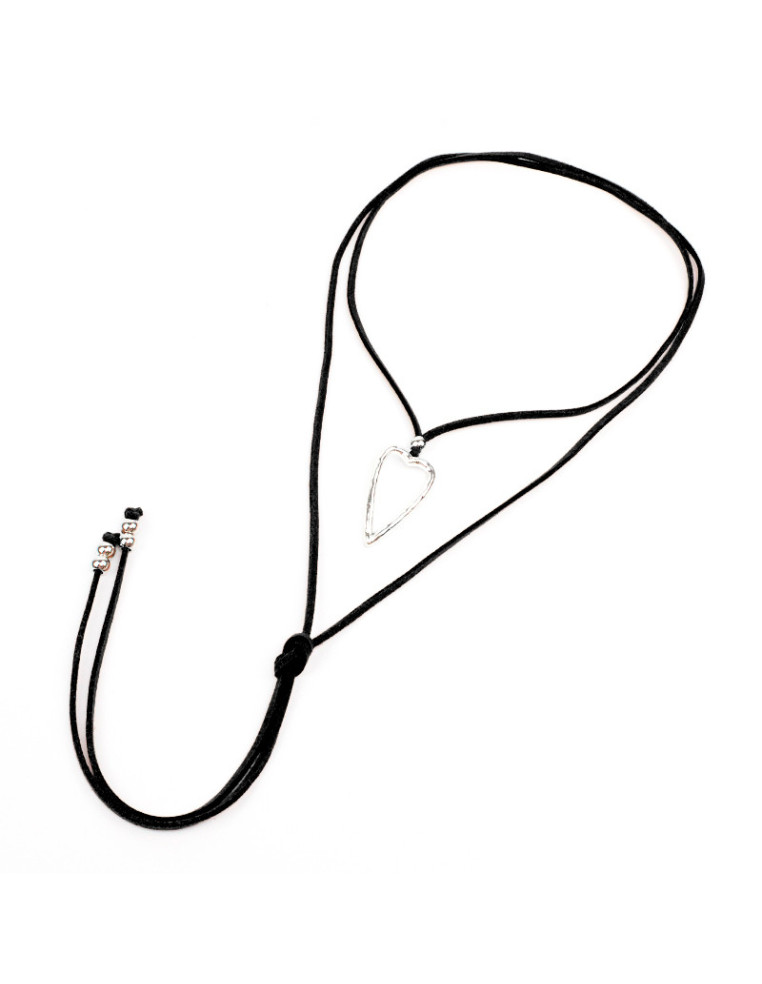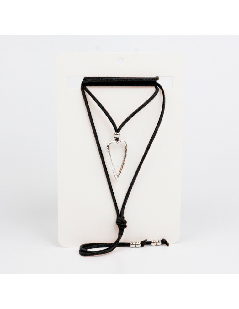 Collar de gamuza de múltiples vueltas, con dije de fundición con forma de corazón y terminales en punteras.