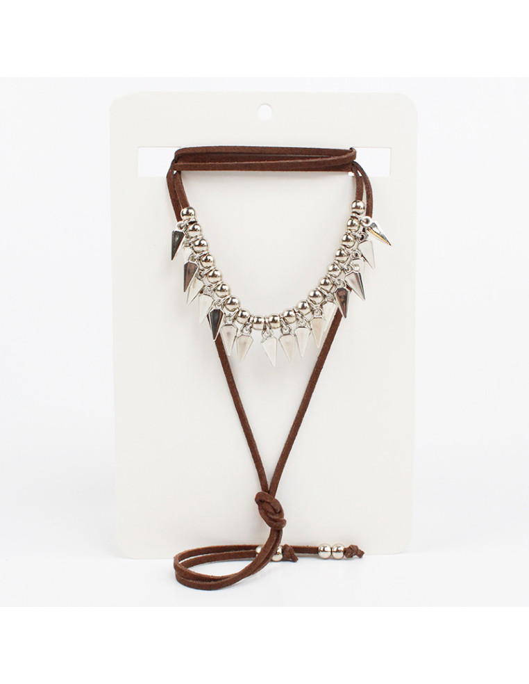 Collar de gamuza de múltiples vueltas, con dijes de fundición y terminales en punteras.